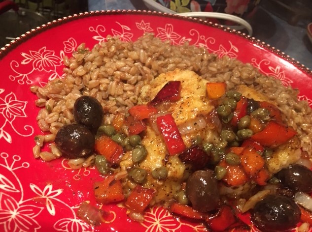 make sure to serve something substantial with it. For this dish, I served myself farro, something else that is "ancient"! If you try this ancient grain, make sure you buy pearled farro. It cooks much faster than the whole grain.